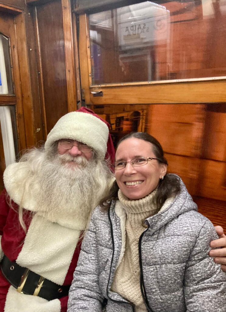 Autorka příspěvku v lisabonské historické tramvaji ve společnosti “Pai Natal“